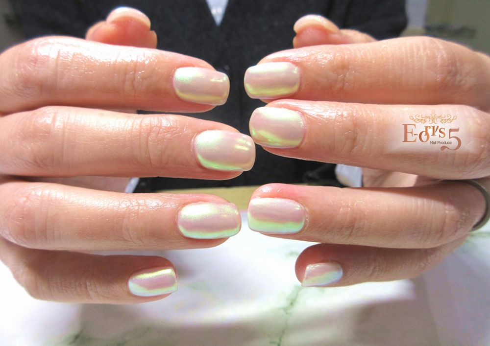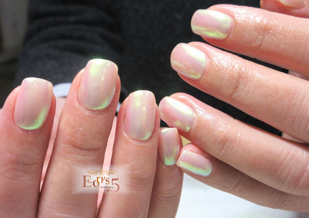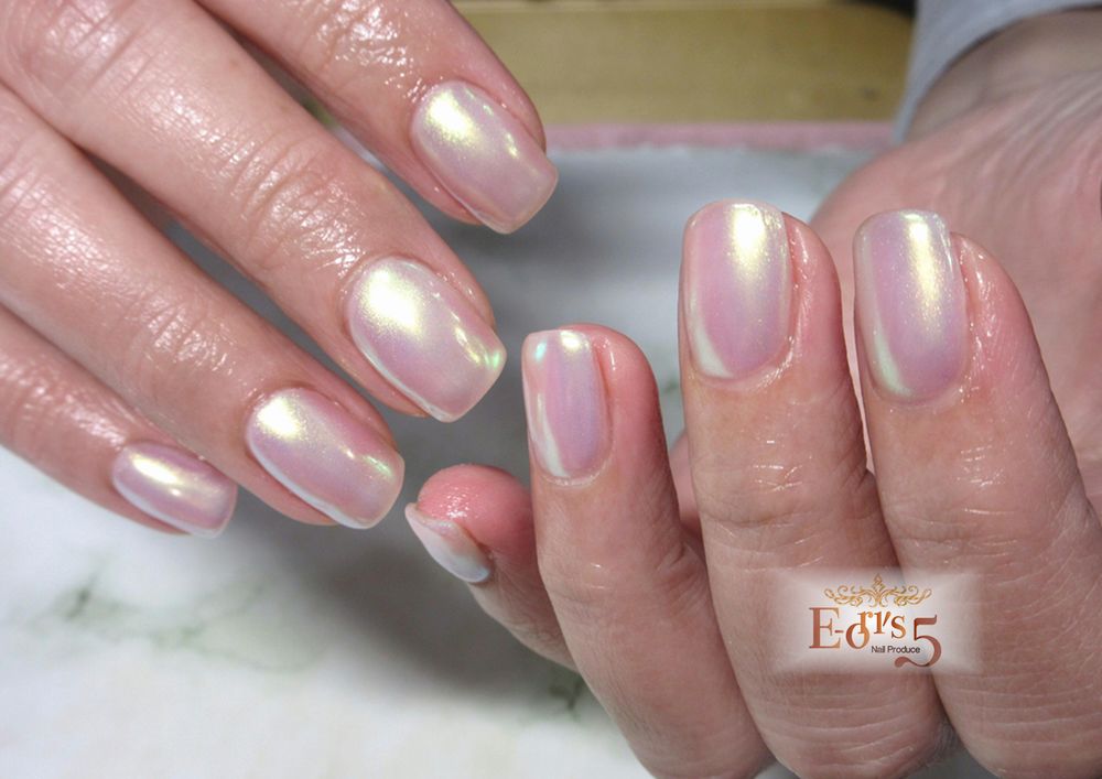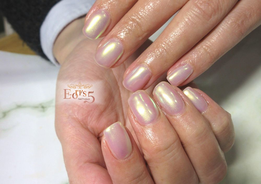 ベースにミルクホワイトをフルコートにして、その上からユニコーンのパウダーを合わせました。