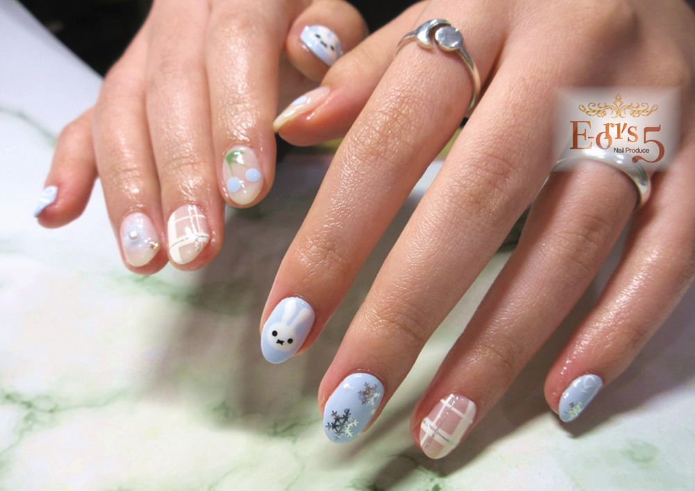 海外から来たというお客様は、ウサギやチェリー、チェック柄にリボンと雪の結晶を合わせたデザインをされました。