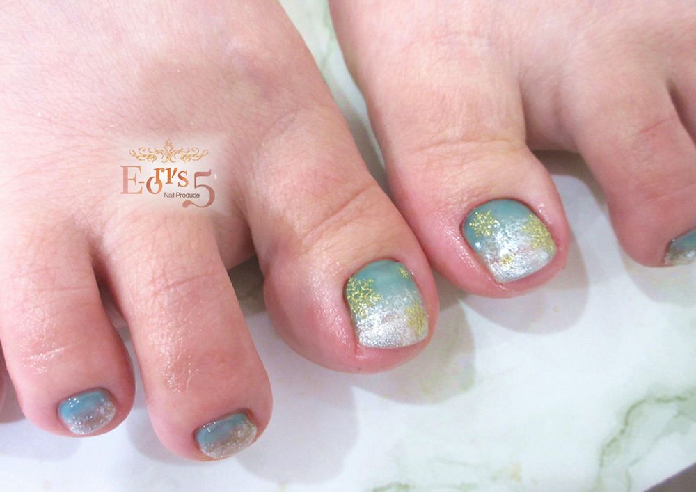 今月のブログデザインの、「➃アナと雪の女王~frozen~」をフット用に少しアレンジさせて頂き、雪の結晶をゴールドにしました。