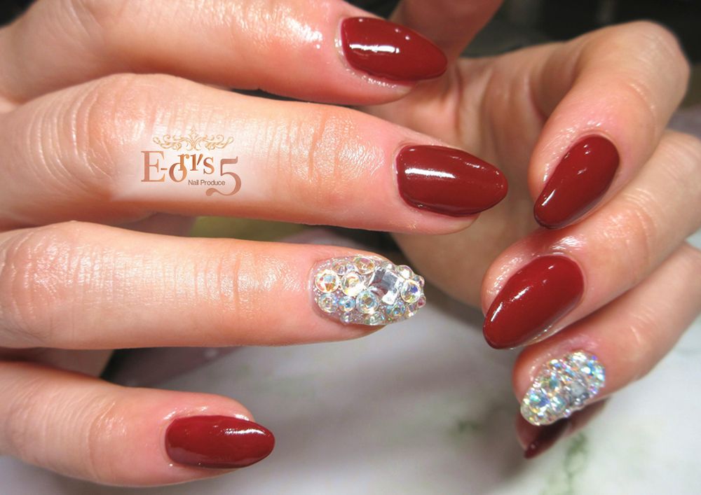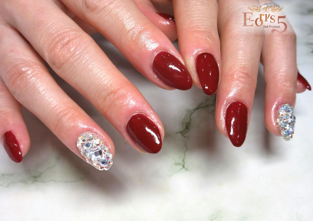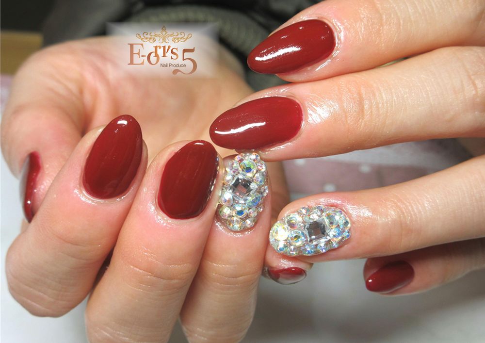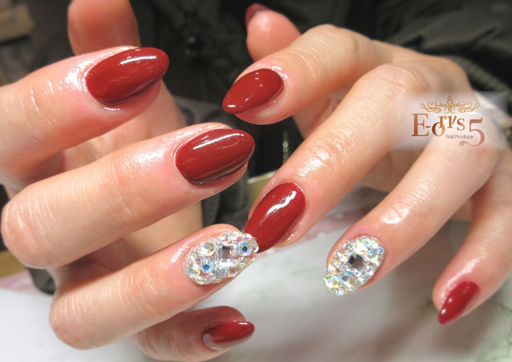 ボルドーカラーに、ポイントにジュエリーのようにストーンをキラキラに敷き詰めました!