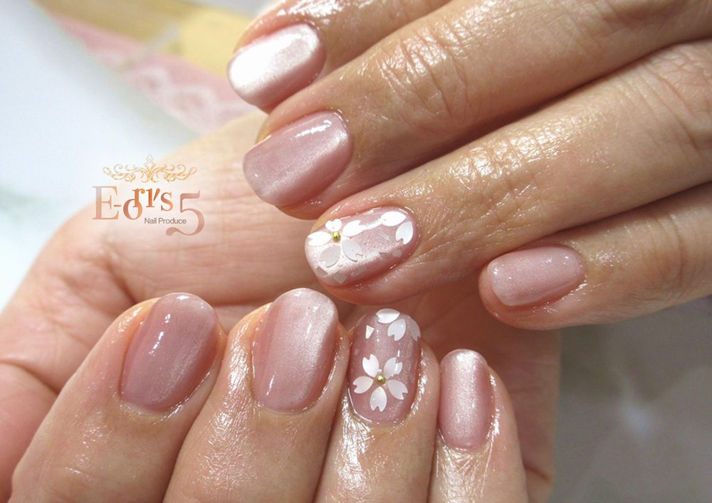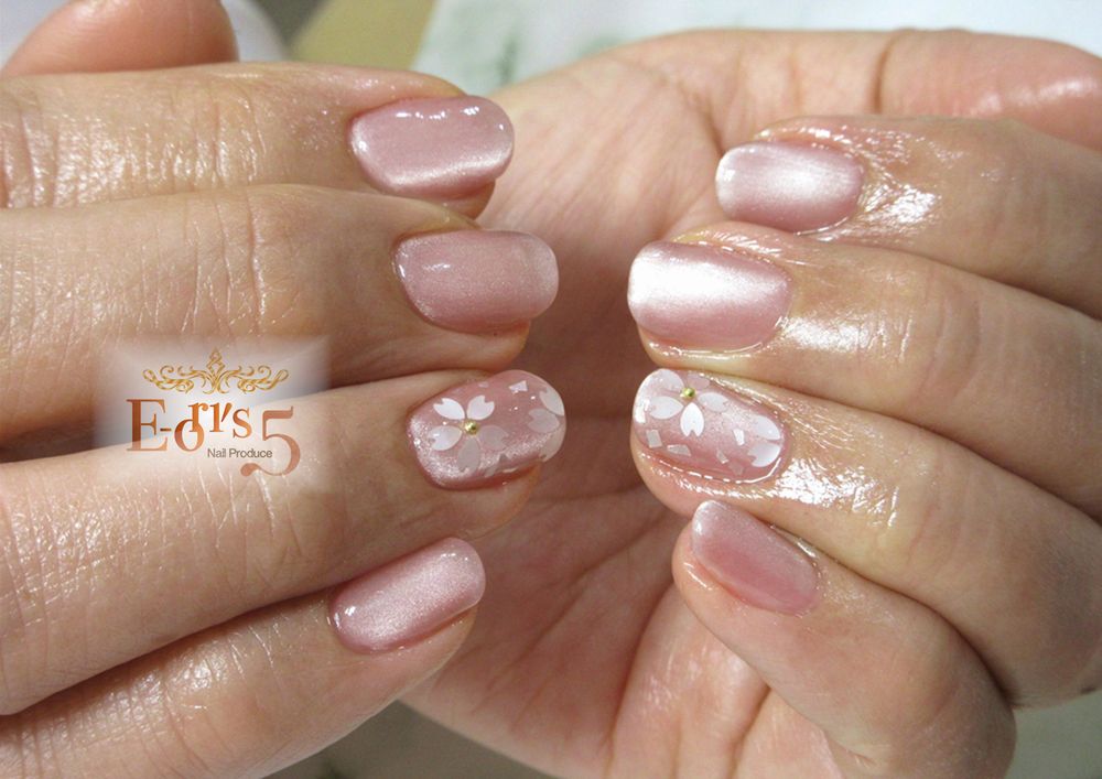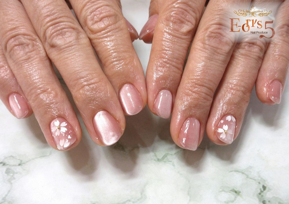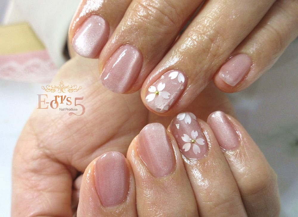 ちゅるんマグでフルコートした上に、桜の花のホログラムを飾り、 ホワイトシェルを散った花弁の様に散らしました。