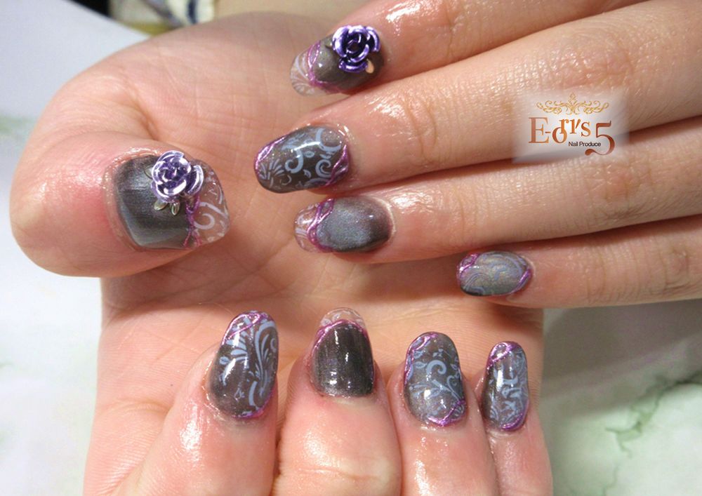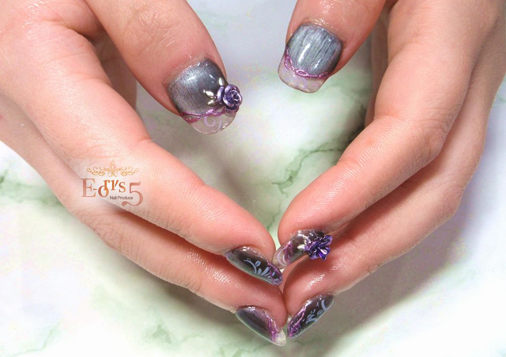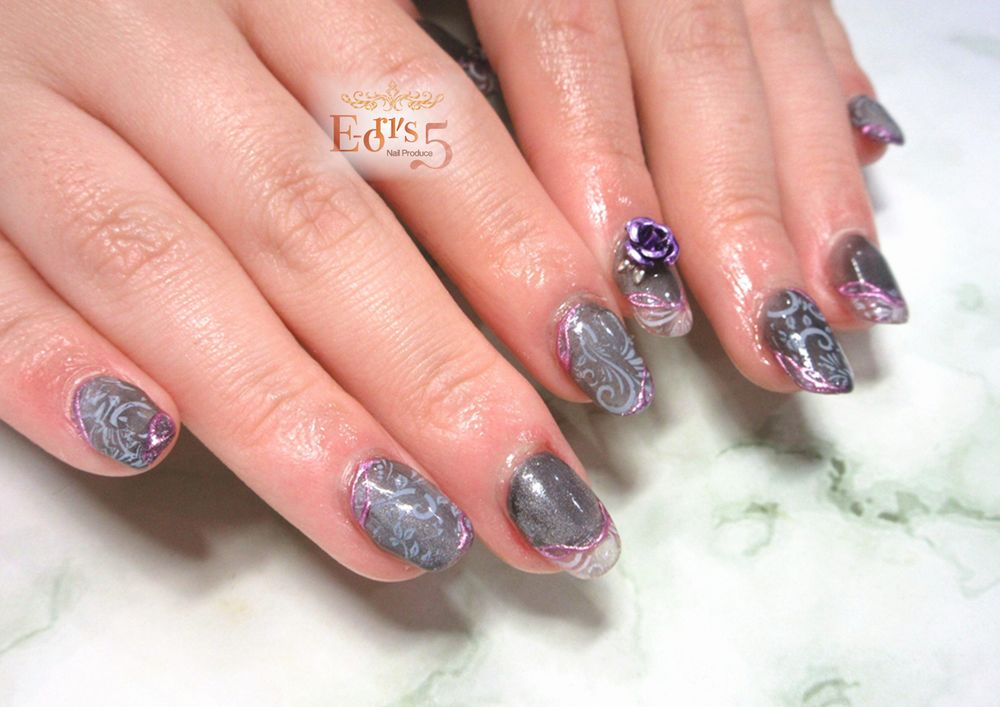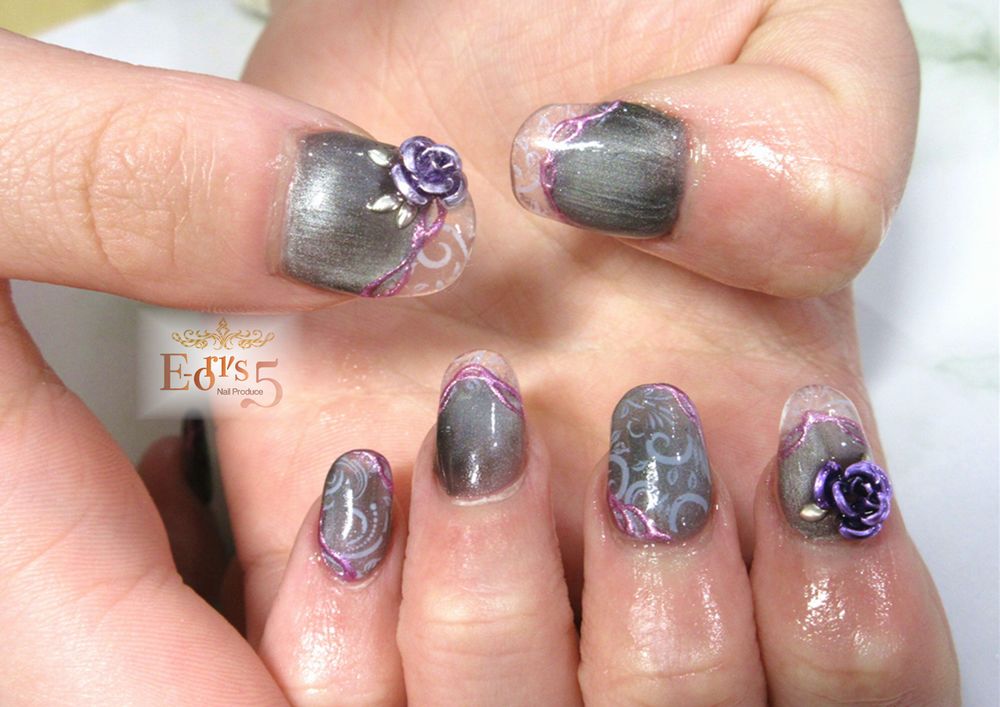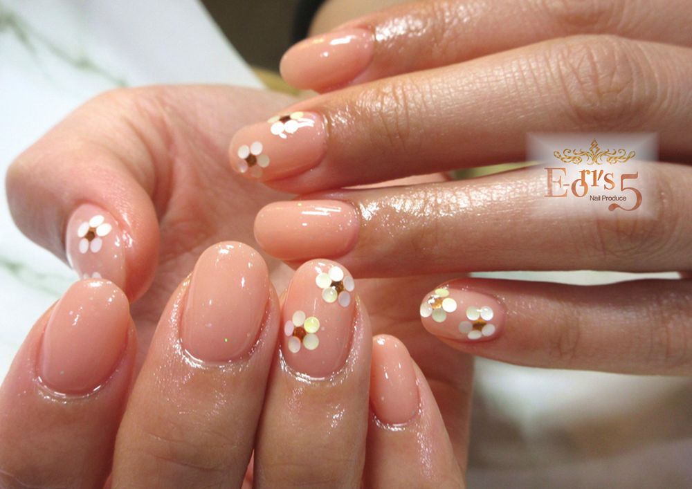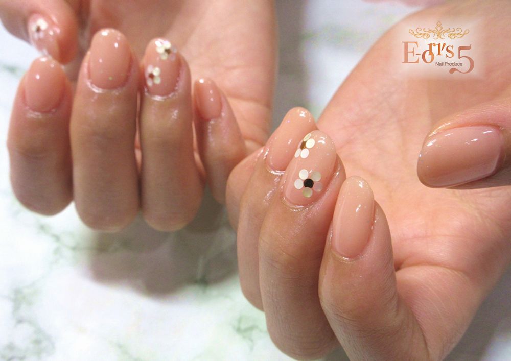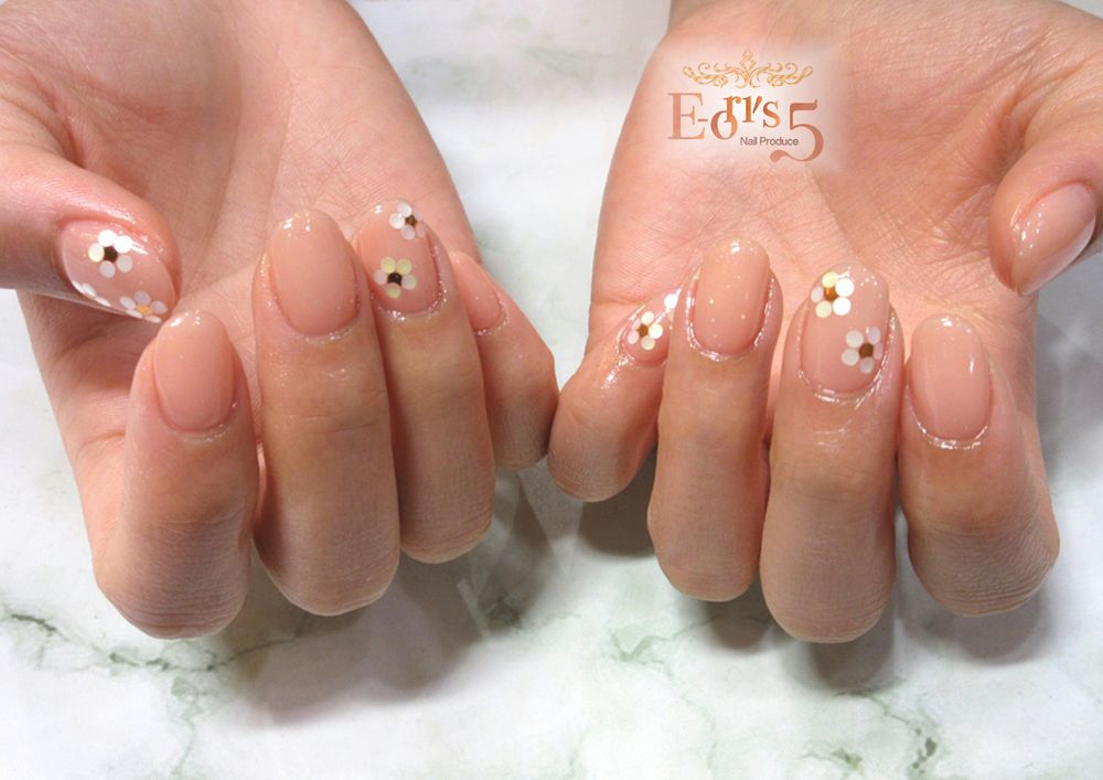 スキンカラーに、ホログラムでデザインしたお花をポイントに飾りました。
