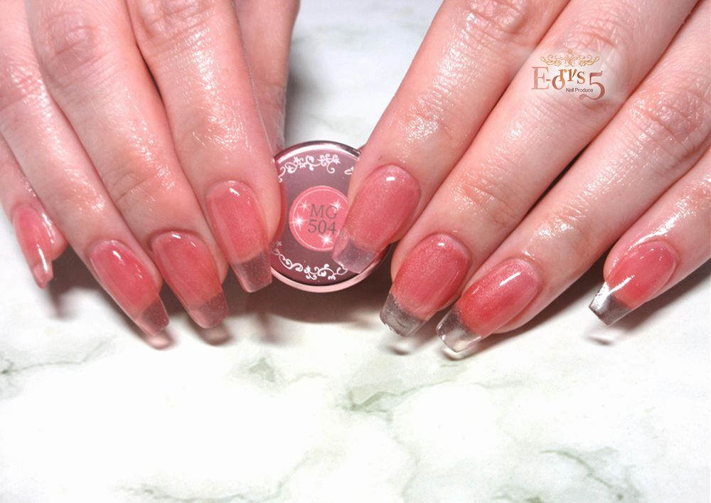 長さをクリアのバレリーナで作り、このクリア感を最大限に出した、新色のちゅるんマグをフルコートとクリアフレンチにしました。