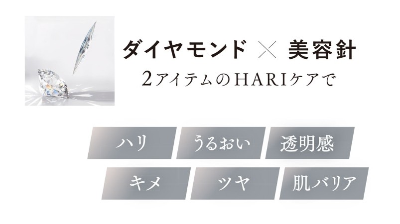 内側から感じるうるおいによるツヤ感を育む、ダイヤモンド※1×HARI※2の2アイテムがセットになりました。