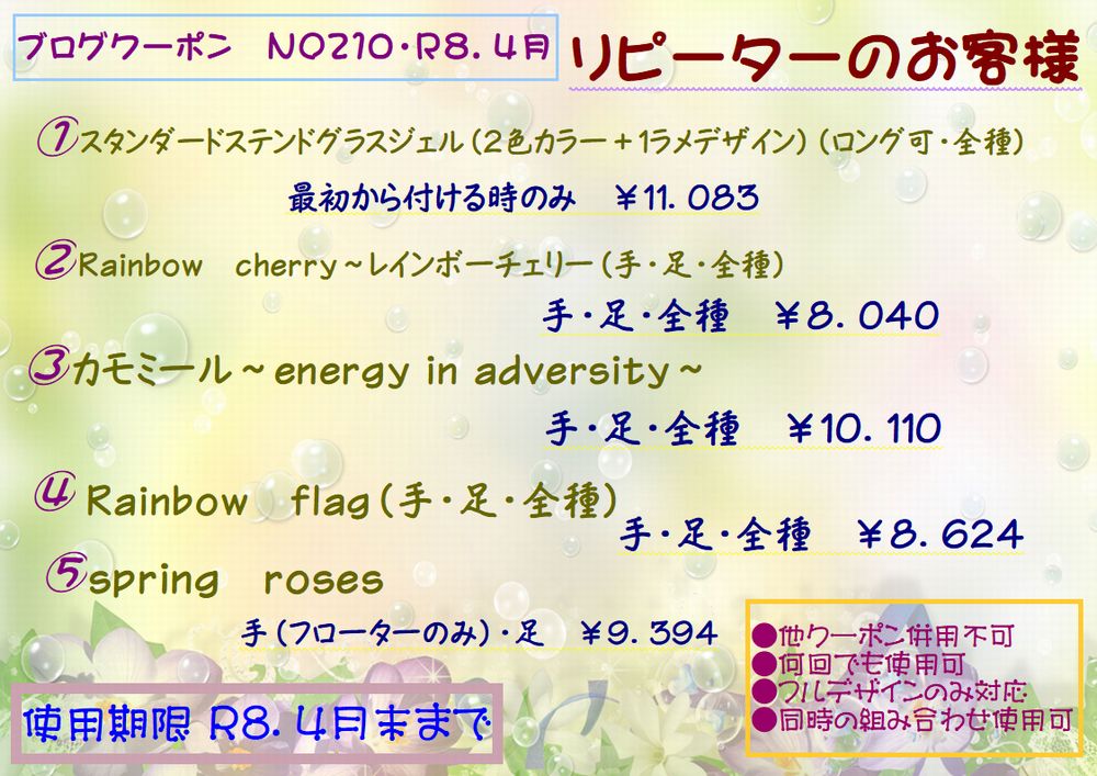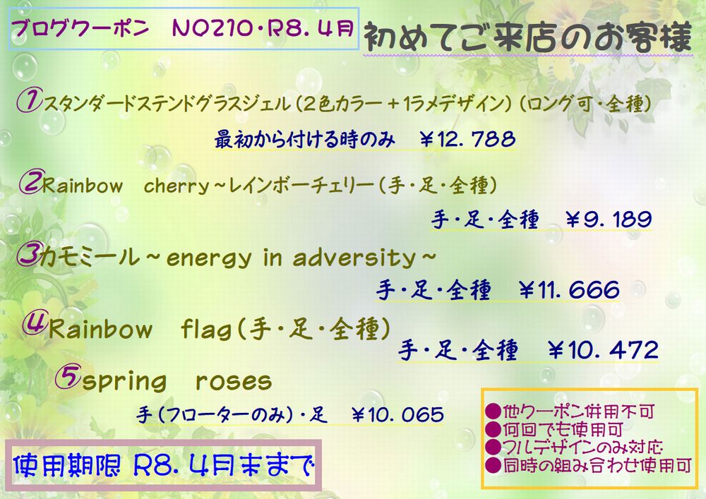 今回も、リーズナブルな内容でご提供させて頂いておりますのでぜひ、ネイルサロンに行った事がない方や、E-ori’s5 NAILPRODUCE(イオリズファイブネイルプロデュース)を利用してみたかった方にはご来店頂きたいと思います。