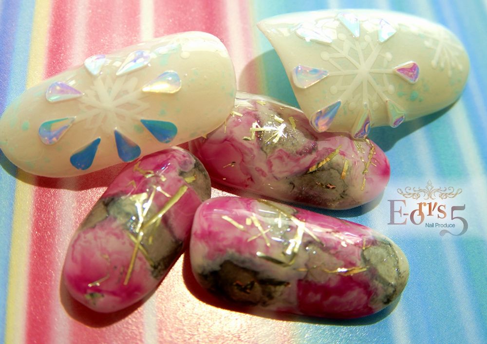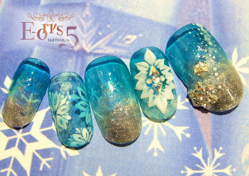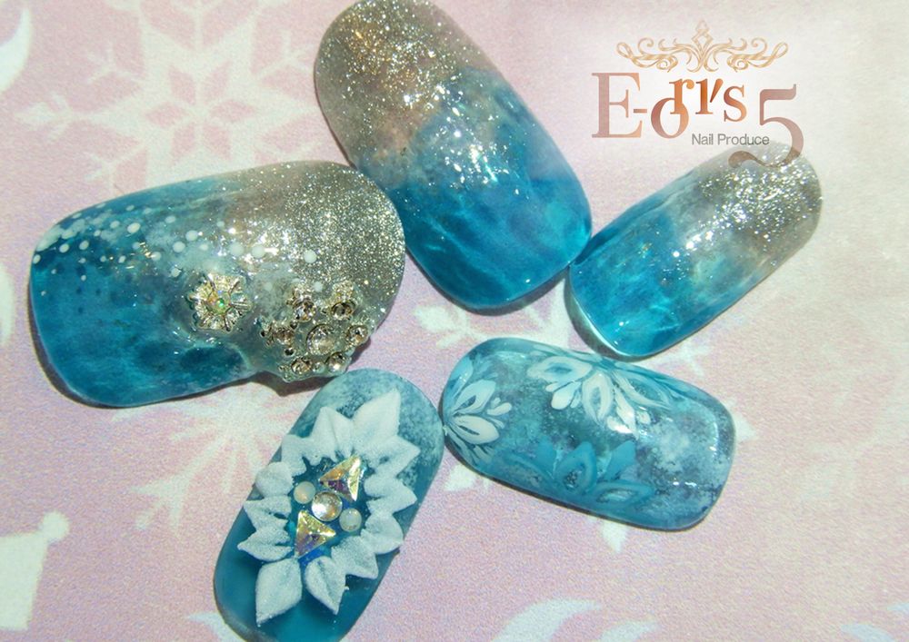アナ雪のイメージにピッタリでしたので、私の中のアナ雪ネイルを作ってみました♪