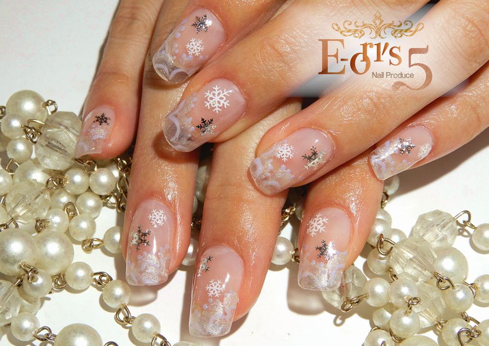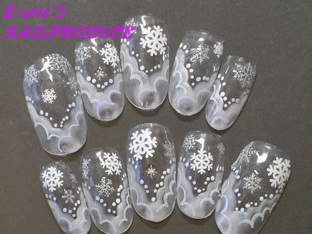 ③【クリアベース+レースデザインフレンチ(2色)+雪の結晶アートデザイン】