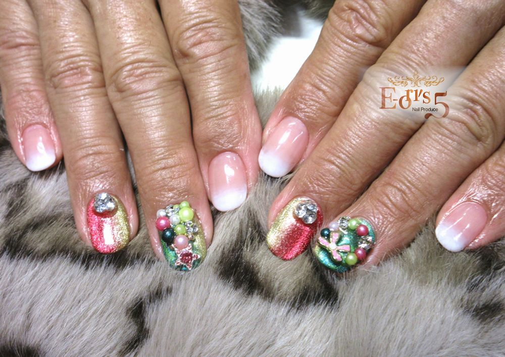 カラフルなクリスマスデザインがギャルネイルで、とてもかわいかったです♪