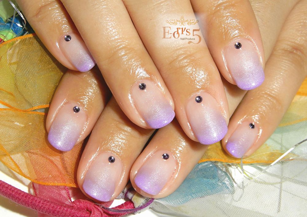 ラベンダーカラーのパールをグラデーションにし、クリスタルストーンを1粒乗せたデザインです。