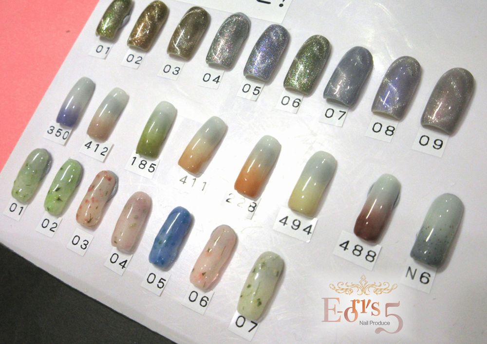 今回の新色を合わせますとE-ori’s5 NAILPRODUCE(イオリズファイブネイルプロデュース)で取り揃えておりますジェルカラーは、42メーカー、1108カラーとなりました。